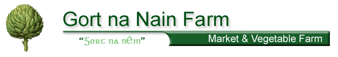 When purchased in December 2003, Gort na Nain consisted of a single 9 acre field in which arable crops were previously intensively grown. The holding has now been divided into four separate fields for vegetable production, and an orchard. One of the four vegetable fields is permanently occupied by perennial vegetables (e.g. asparagus, seakale and globe artichokes) and 10 polytunnels for the cultivation of aubergines, peppers, tomatoes and other vegetables that find it a little too difficult to grow out in the open. The other three fields are used for the cultivation of hardy outdoor vegetables. Many people visiting Gort na Nain who are not familiar with the effect of the Gulf-Stream on Cork's South Coast, are amazed to see relative exotics such as aubergines, chilli peppers, borlotti beans, melons and globe artichokes growing side-by-side with the more conventional vegetables like potatoes, cauliflowers and salad crops.